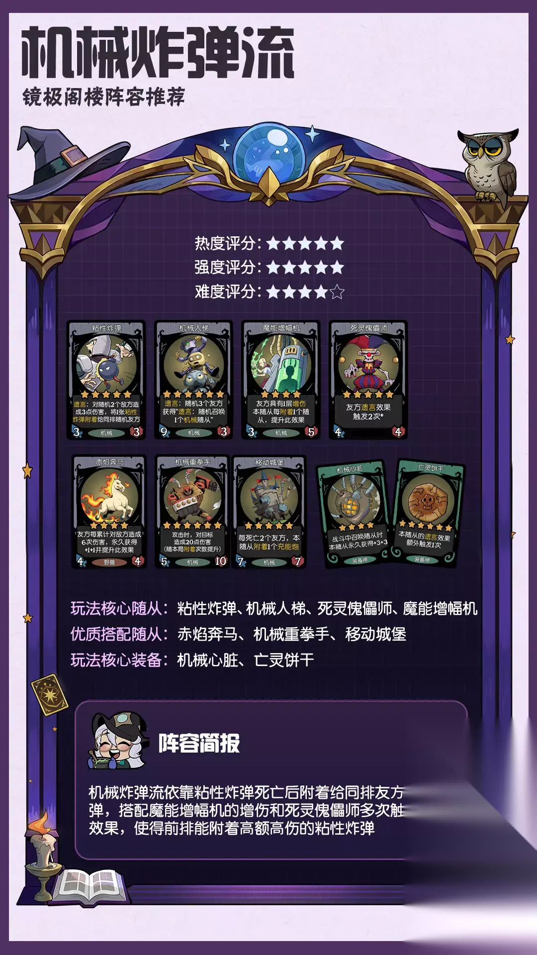 在月圆之夜手游的镜极阁楼模式中存在多种强势阵容,玩家可以根绝不同的橘色搭配出不同的流派进行挑战,不知道有哪些的可以参考月圆之夜镜极阁楼热门阵容推荐攻略。 月圆之夜镜极阁楼热门阵容推荐攻略 一、龙种族阵容 1、恶龙刃角龙流 核心随从:恶龙、刃角龙、死灵傀儡师。 玩法思路:通过恶龙触发刃角龙的遗言效果来达到快速清场的效果。该阵容成型快,前中期强度高,适配多个英雄的技能。 2、苍穹咆哮传功流 核心随从:苍穹之翼、咆哮巨龙。 玩法思路:利用苍穹之翼的传功属性,快速发育咆哮巨龙的身材。该阵容实战没有固定的过渡阵容,后期重点发育苍穹之翼的身材,找到苍穹之翼和咆哮巨龙的核心装备即可。 3、先手踏云祥龙流 核心随从:踏云祥龙、灾厄、贪食之龙。 玩法思路:以先手触发踏云祥龙的效果为核心,搭配灾厄和贪食之龙提升阵容强度。虽然成型难度较高,但上限和强度都很高。
