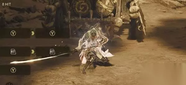 连按就是戳跟捞循环,优点是攻速比较快 太刀有部分的招式要衔接在其它动作之后才能用 攻速快的轻攻击就适合用来先垫一刀当作前置动作 后退斩 也叫做袈裟斩 同时按攻击+轻攻击键使用,使用后会边斩击边往后小跳一步。 在其它多数攻击动作和翻滚后可以搭配左&右方向键使用左&右移动斩,会往左或右小跳一步。 主要应用场合是用来调整打点。 练气计量表 以上提到的攻击动作命中目标时可以累积【练气计量表】 练气就是游戏画面左上这个计量表里面的量