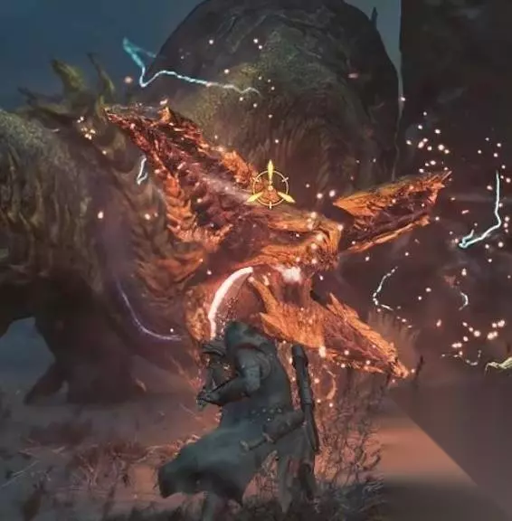 这时候做的动作都会往准星去调整方向 可以利用转视角的方式来调整准星面对的方向从而调整攻击方向 象是气刃突刺就可以利用这个方法来调整出刀的方向 其它攻击动作也可以用集中模式来调整打点 也包括纳刀之后的方向 熟练后就可以流畅的在战斗中调整打点 在集中模式时还有一个弱点攻击的机制 对魔物持续输出同个部位会出现伤口 这时候开集中模式就可以看到红色的标记