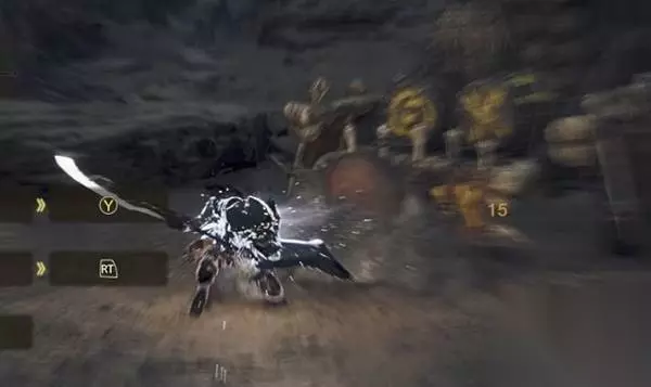 蓄力时会增加练气 蓄力中放开气刃键会根据你的蓄力阶段打出对应的气刃斩攻击 最开始的蓄力阶段放开后是打气刃斩2 等猎人手举到头附近再放开会打气刃斩3 蓄到底再放开就是大回旋 因为要先按气刃键才能蓄力 所以一般使用会先打出一个气刃1 不过在其它动作中提早按着气刃键就可以不打气刃1直接蓄力 在翻滚中按着气刃键起身后也可以直接蓄力 蓄力时可以走位并且可以用翻滚取消蓄力 应用场合是在气刃连段中缺练气的时候利用气刃蓄力接续后面的连段 或空档直接蓄到底打一个大回旋 另外蓄力在手还没抬起来前可以接看破斩跟特殊收刀 气刃蓄力手还没抬起来前示意图: