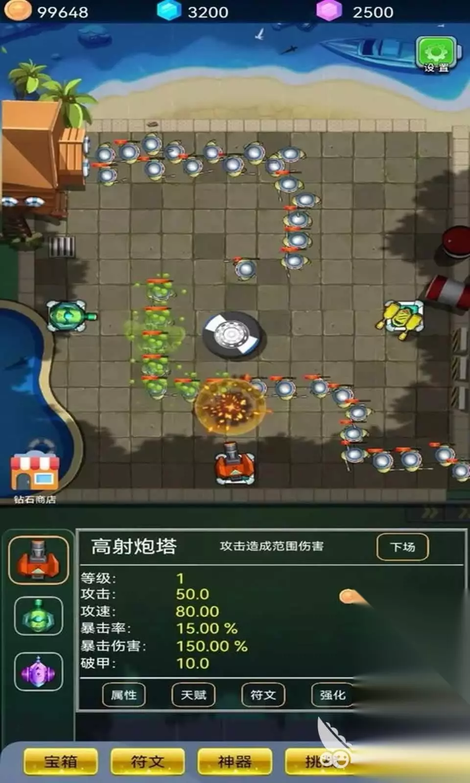 《塔防模拟器》在对局中的每一个阶段,都会向玩家实时派发可以升级塔防的货币,游戏中在引入了20余种类别,在作战特性和进化特征上各有神通的防御塔,而且还在关卡体系中针对敌人的攻击波次进行了无上限的打造,游戏还引入了令人眼花纷乱的科技线功能,各种类型特性难以琢磨的怪物,让你过足塔防对阵的瘾。 手机扫码下载233乐园APP预约 预约订阅最新动态 优先233乐园APP下载 2、《爆裂塔防》