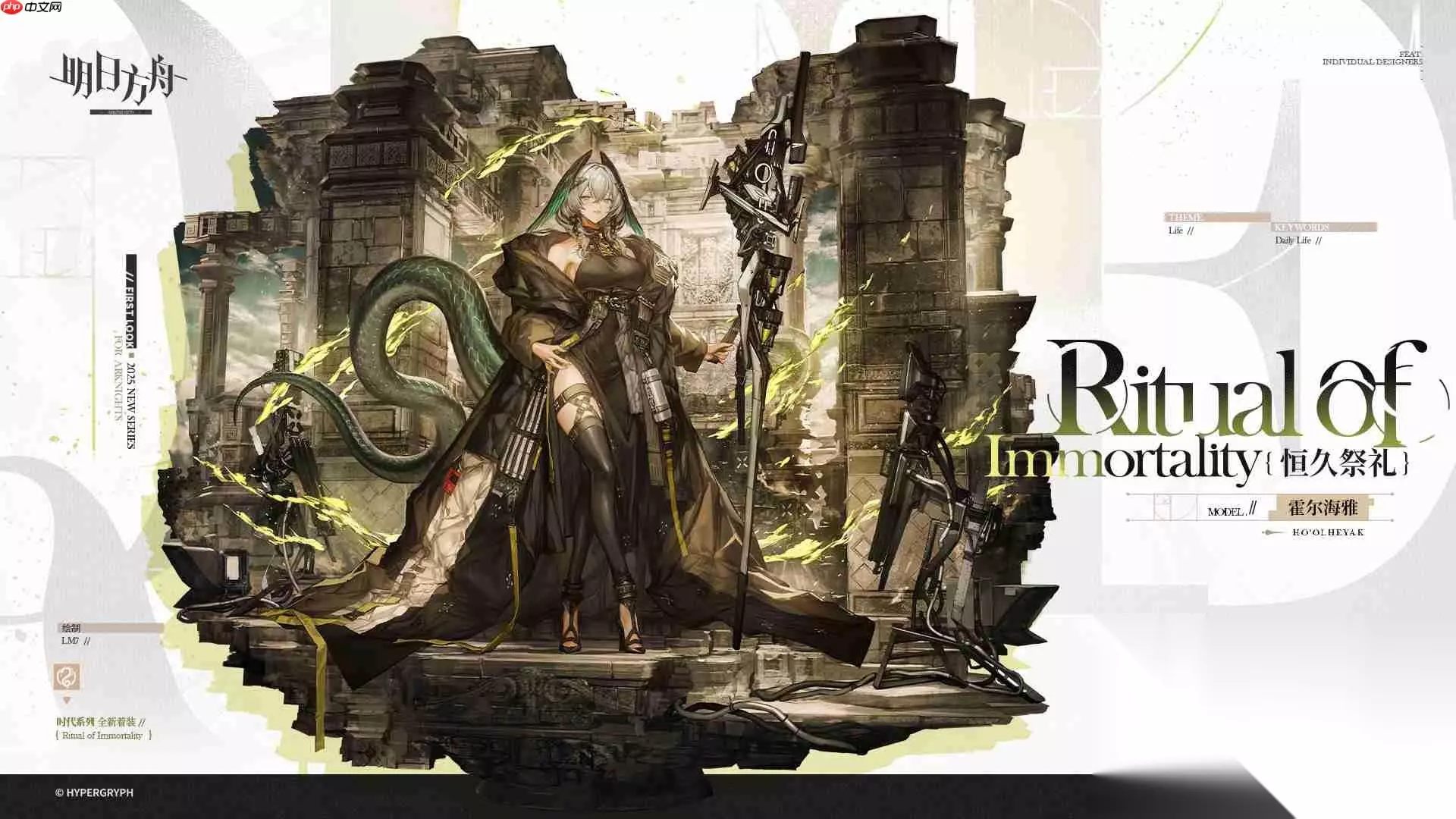 明日方舟霍尔海雅恒久祭礼皮肤详情一览 //恒久祭礼 - 霍尔海雅 EPOQUE系列新作「恒久祭礼」。这是霍尔海雅在进行遗迹巡礼时的专属装扮。宽松的长袍搭配极具现代风格的黑色裙装,整体造型既神秘又前卫,昭示着她此行的目的并非沉溺于过往,而是凌驾于时间之上,俯瞰历史长河。 _____________ 她在铭刻着无数往事的展台中央,迈出轻盈却傲然的步伐,仿佛一切时光皆在她的注视之下流转。 皮肤展示