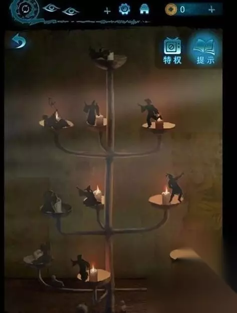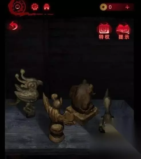 11、把老肖的铜镜给奚月遥,用铜镜破处幻象,前往木船,在地上捡起蝙蝠木雕。 12、把小铜船和钱放到穿上右侧的箱子上,可以跳过,根据线索(因为我找之前随便点了好几处线索大家在破不开的时候看一下或者直接跳过),得到洿泽木雕和心形木雕,把心形木雕给老肖,把心形木雕和秤砣挂上古墓里人群中间的杆上,获得物欲愿,查看纸条提示,捡起地上绳子和山魈木雕。 13、根据纸条上炉中四根香,烛台燃左一右一右二,三鱼头五鸡头,酒半满把屋内祭台上东西摆好。(小高能)