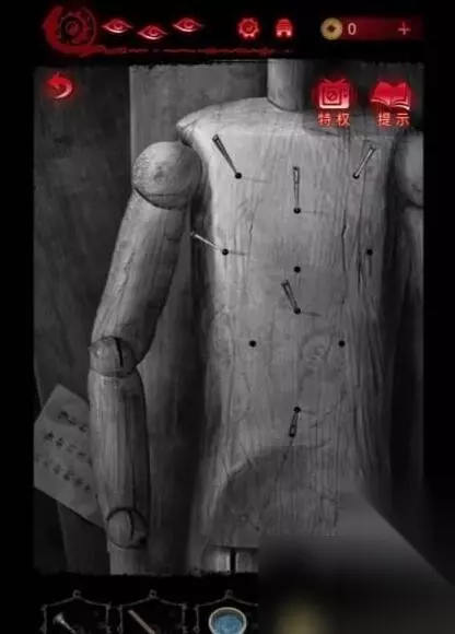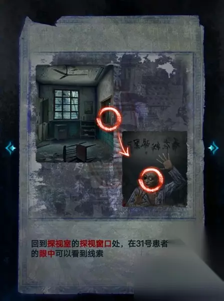 23、接着回到探视室,通过观察31号病患木偶的眼球,玩家可以得到保险箱的线索。