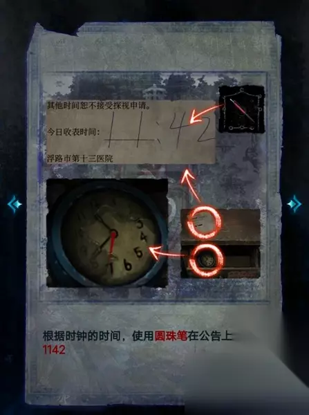 9、此时玩家需要根据时钟的时间来填写正确的收表时间,圆珠笔在之前的前台处拾取。