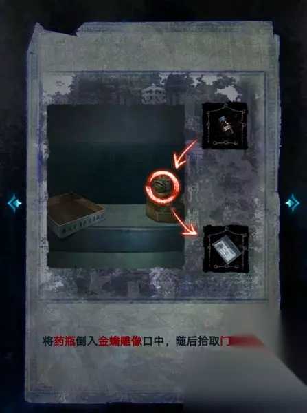4、将药瓶的药倒入前台金蝉雕像的口中,获取门禁卡。