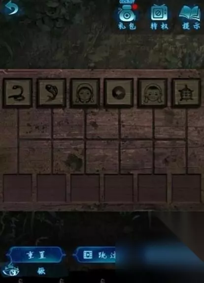 7、切换奚月遥视角在左侧桥下埋藏两个布娃娃,之后根据老肖视角解开迷宫,前左右右前前左右前右右,这个顺序走过迷宫,根据墙壁上卍解开盒子,得到木雕和古币。