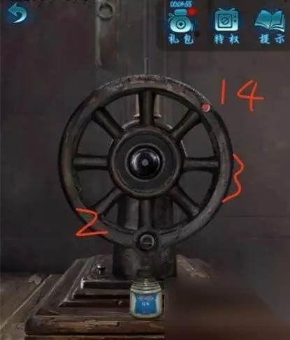 5、来到院外把链条放到自行车轮,墙上出现数字104、94、89,右手边抬取辐条。 6、把辐条安到室内收音机上,根据墙上数字一次调收音机,听到音频(高能)。 7、到地下室左手边拿蜡烛,汤婆婆场景树上拿铜人,忘记哪里了(好像在院子)拿铁锹,屋内右手边神龛拿闹钟。 8、剪刀插入地下室墙上机关获得圆盘,把圆盘给汤婆婆拿到邢德盘,放到地下室桌面。 9、如图用铁锹挖藏宝图标记的地方,如图开锁,拿到铁丝枪和照片。