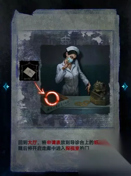 10、写完申请表后,将表放到前台的纸盒中,随后护士人偶就会为玩家开启走廊中进入探视室的门。