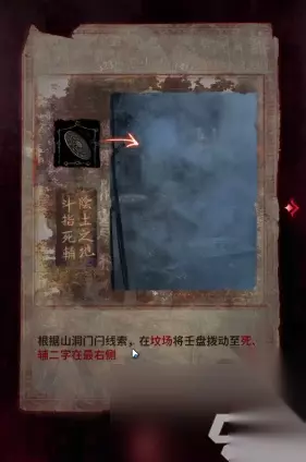 11、根据山洞门闩的线索,在坟场将壬盘转动至死、辅在最右侧,在密林地方,转动至生、英在最右侧。