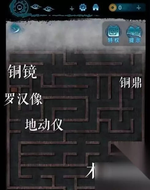 8、按照从入口走前左右左前左右前右前前前前右左左的前进得到罗汉像,把罗汉像给老肖(迷宫可以来回切换视角来走)放在屋内的雕像台上,罗汉像旁边获取线索获取秤砣和寺庙。