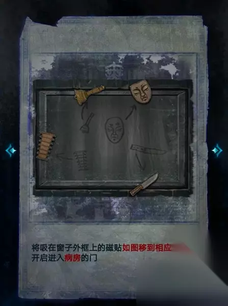 19、之后将吸在窗子外框上的磁贴移动到图中的位置,就可以开启病房的门。