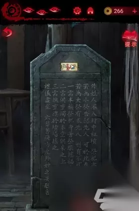 14、将手机放在墓碑上方的空洞里,然后借助石刀将石棺上的红绳割开获得唢呐,根据上方的文字提示按住吹奏,完成之后得到纸衣服。