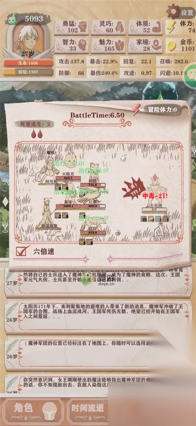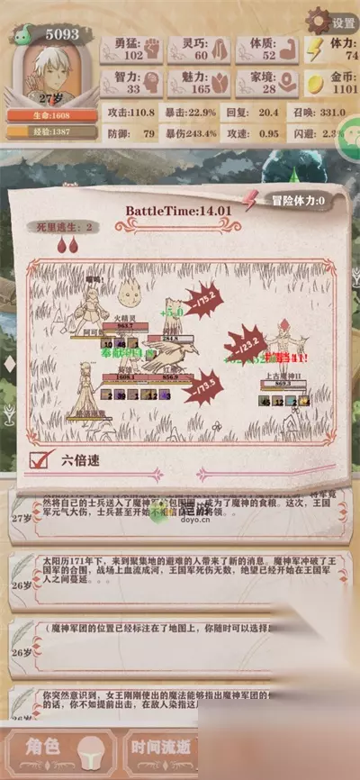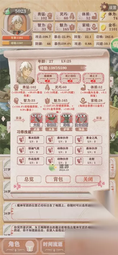2、打魔王前的天赋和数据以及技能。