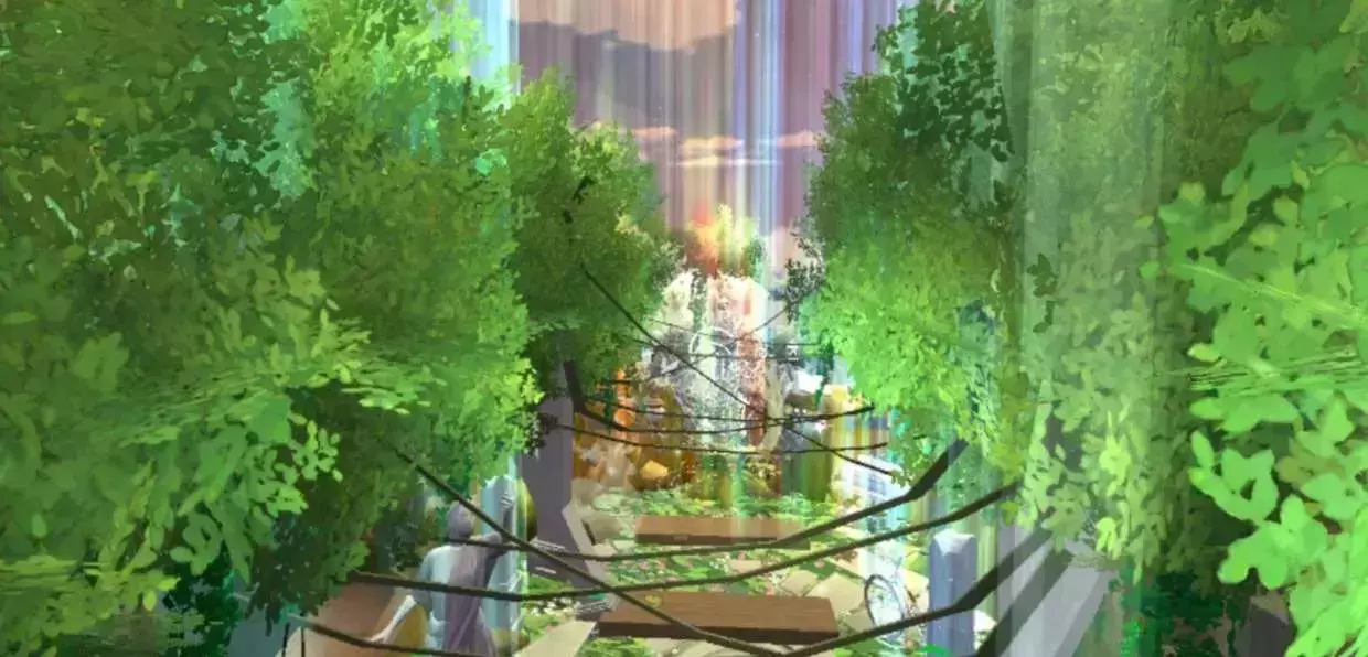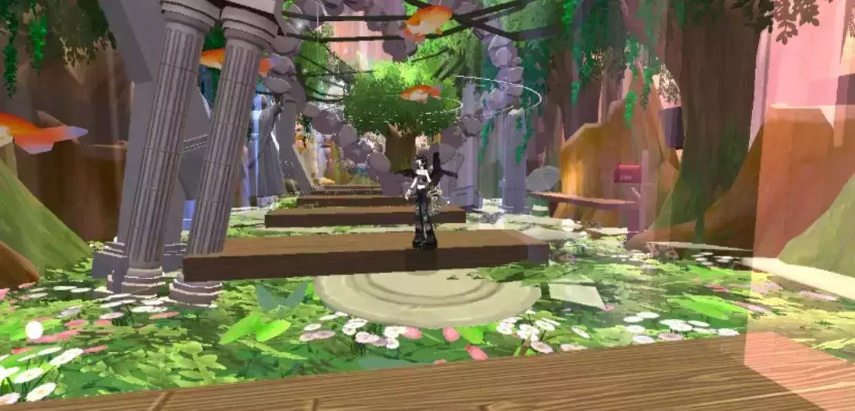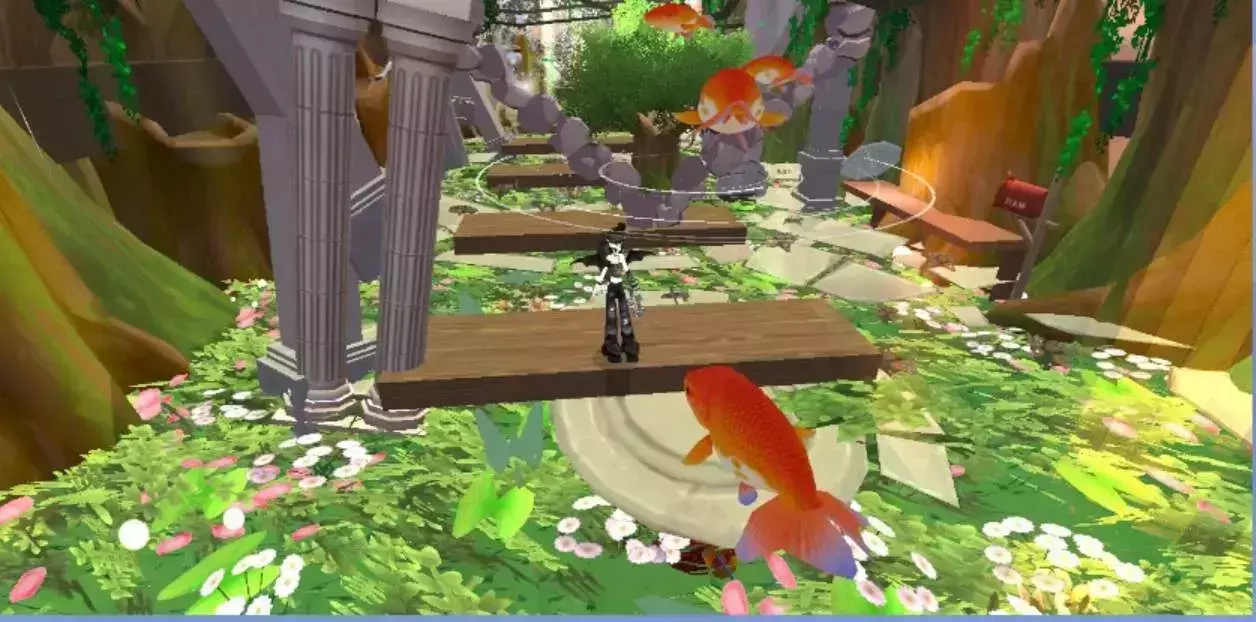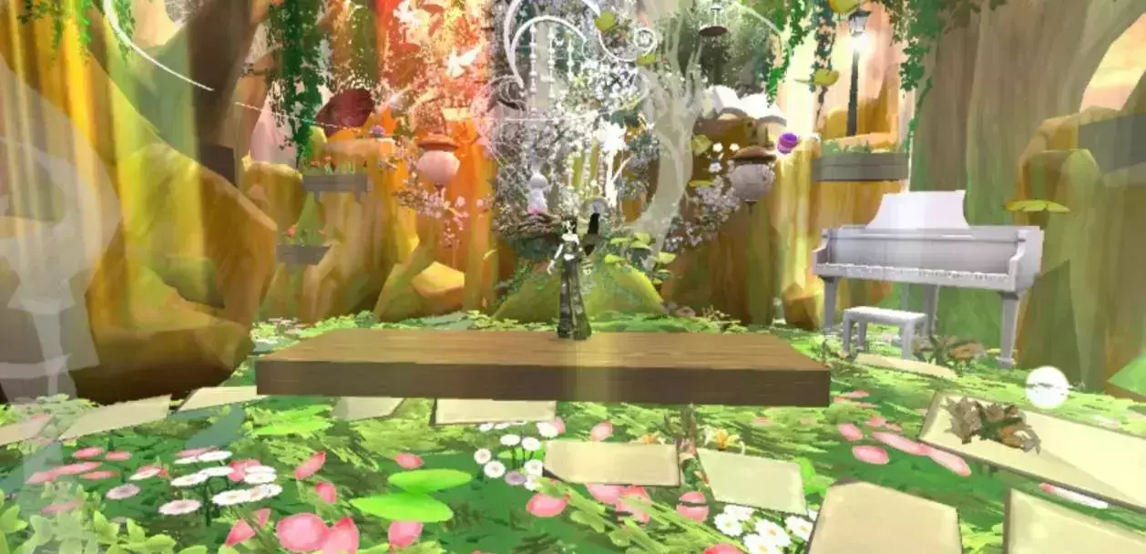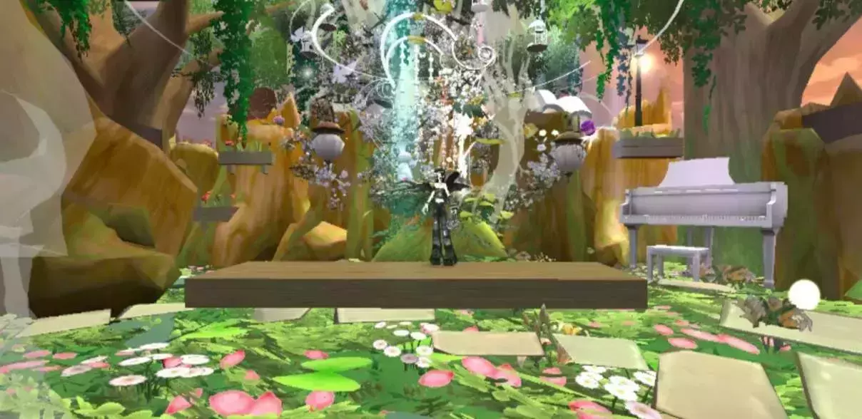 进入地图,我们旁边是茂盛的树木,游动的锦鲤,往前走,我们可以看见木板做的阶梯在前面,地图两侧是高大的树木,旁边发出阵阵霞光,梦幻斑斓,往前走,我们能看见最前面是树枝环绕的藤蔓,上面还有着小灯笼,坐着一只小兔子,藤蔓旁边是鲜花纷纷缠绕,旁边有一架钢琴和倒在树旁的自行车,一切都是多么美好,梦幻,把夏天的美好展现在了这里,让人不禁的想多留下,拍个照,飞舞的蝴蝶,四处的霞光,游动的鱼儿,一切都那么令人陶醉.