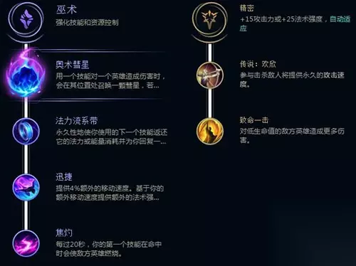 至于提莫的符文选择,那可以真是五花八门,有的是以输出为主,而有的认为魔法伤害已经足够了,需要一些血量和保命的情况,玩家可以按照自己的打法来自行选择,下面就给大家介绍一种常见的符文搭配。 提莫是个AP输出较高的英雄,所以我们主系用巫术系,又因为提莫有AD玩法,所以辅助系我们使用精密系。巫术和精密系搭配产生+15攻击或+25法强的效果。提升了提莫的基础属性。 符文选择:英雄联盟手游提莫符文攻略 连招公式