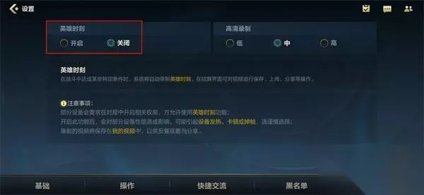 2、开启英雄时刻的方法是玩家在游戏的主界面中进入设置界面,接着在设置界面中的右下角点击进入录像界面。