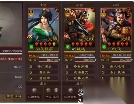 三国志战略版魏延张飞关银屏怎么玩?三国志战略版魏延张飞关银屏这套是比较传统的关妹蜀枪阵容。也是前中期非常强势的一套阵容。首先还是先解析一下三国志战略版魏延张飞关银屏这套的阵容构成,从兵种方面来说自然是首推枪兵阵容。三武将都是s级的枪兵兵种适应性,在加上这三武将也都是蜀国阵营的,在属性加成这方面这套还是非常强大的。而三国志战略版魏延张飞关银屏真正的构建核心在于每一个武将的定位。首先关妹在这里算是体系的真正核心,虽然是半辅助半输出的定位,但是这个武将可以利用自身的震慑控制为张飞和魏延拉扯出输出空间,让他们可以更加轻松的结束战斗。张飞在这套阵容里是输出保证了阵容的下限,魏延也是输出提高了这套阵容的上限,下面小编介绍一下这套到底应该怎么玩。