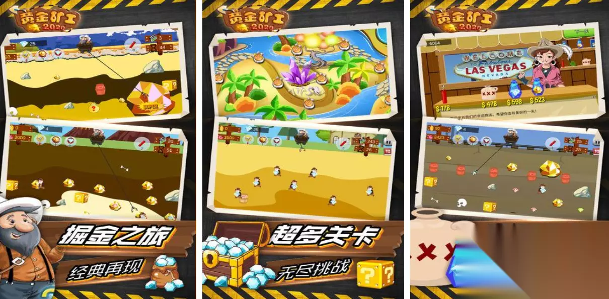 这款最经典的页游黄金矿工想必大家都接触过,点触屏幕就能控制抓钩的方向和互动时机,带有“?”标注的口袋还会提供不同的辅助道具,TNT炸药、加速时间等基础道具应有尽有,黄金的大小跟获得资金的数量成正比,经典好玩的挖矿互动方式让玩家回味无穷,页游时代的基础经典背景也为本作加分不少。 高速下载 普通下载 3、《黄金矿工2020版》
