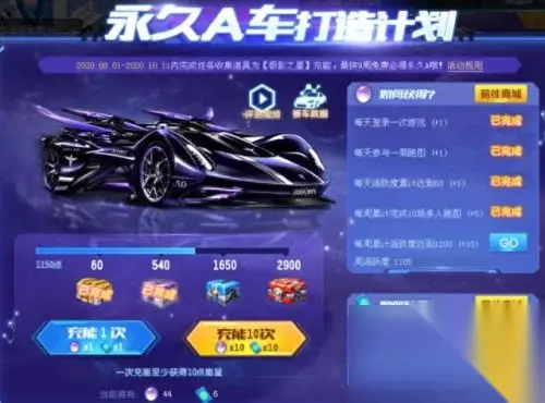QQ飞车出了这么多年,白嫖道具也出了很多,下面小编就给大家介绍用什么方式白嫖到永久A车、永久机甲车、永久S车,永久座椅和宠物。 方式一,完成游戏开发商出的各种活动。例如现在正处于任务期中的永久A车极影之星打造计划,每天每周都达到任务要求,到了活动结束之时就可以成功兑换到永久A车极影之星。