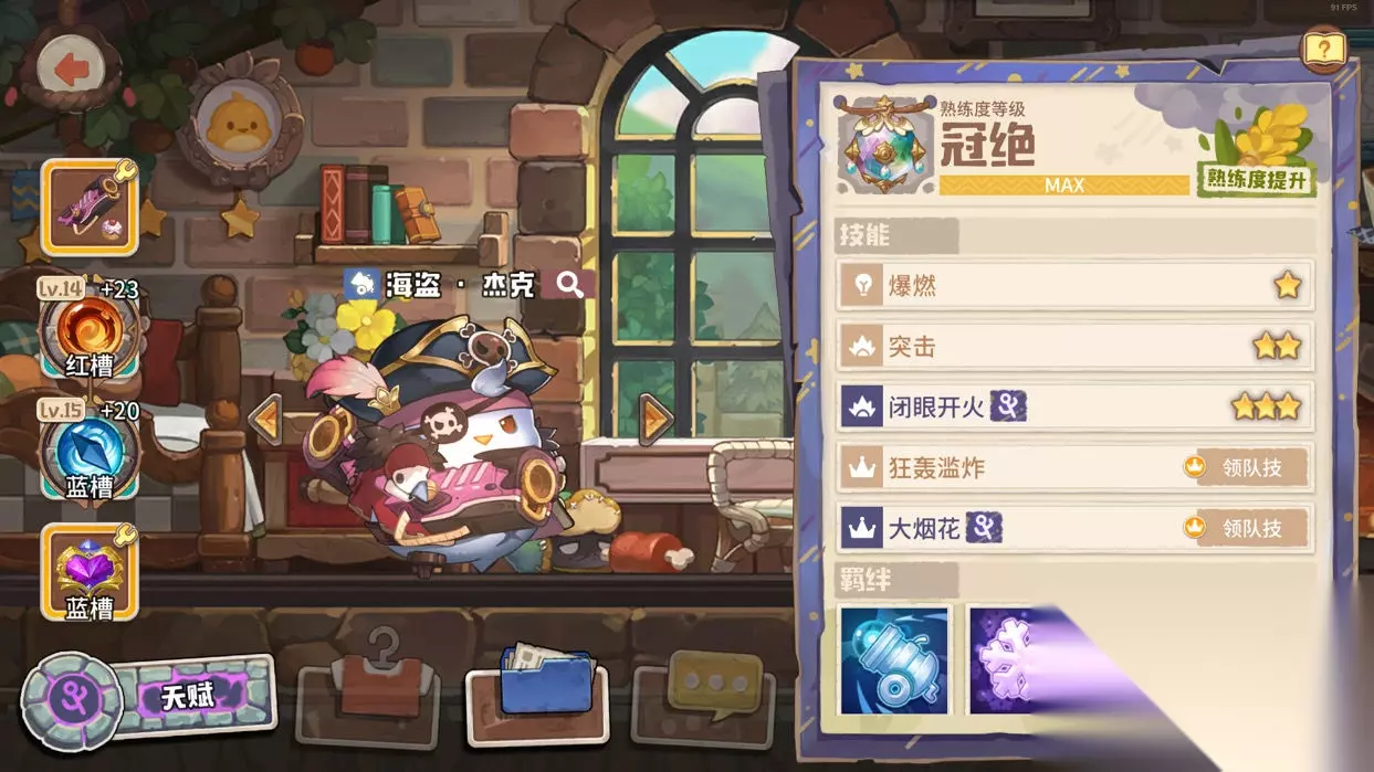 领队杰克,海洋四少中的三弟,领队二技大烟花是地雷流的核心,所有爬高的队伍都缺不了他。由于我的队伍群伤不足,杰克在我的队伍里只能用卡路里杀手和火焰新星补aoe伤害(爆炸伤害是燃烧层数决定的,层数越多爆炸伤害便越高)。 武器我选了卡路里杀手,神石则选了火焰新星+极转,配合上远程组圣物拉齐斯真菌,可以轻松打出多层燃烧。最后的槽位可以任意选择,但带卡路里杀手的杰克自身输出非常低,所以我塞了一个暴击光环石。 我推荐大家试一试用卡路里杰克打辅助,因为造价不高,只需配合圣物拉齐斯真菌便能把地雷流的爆炸发挥到极致!