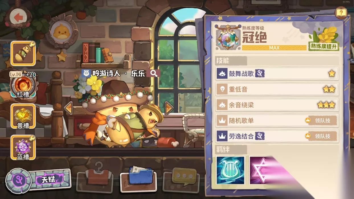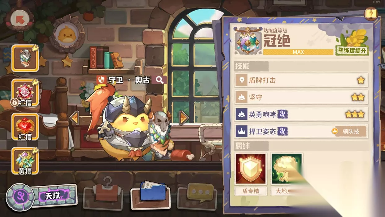领队乐乐,爬高阵容必须要有的咔叽。虽然他又菜又多余,却也没有可以代替他的咔叽了。 武器配的是小黄鸡,在开场时提供3回合的易伤效果。宝石方面主要以功能性为主,输出并不重要。我推荐多配光环宝石,也可以参考阵容的需求,适当补燃烧、感电和冰缓等状态。(我认为我的队伍比较需要aoe燃烧效果,所以带的火焰新星)
