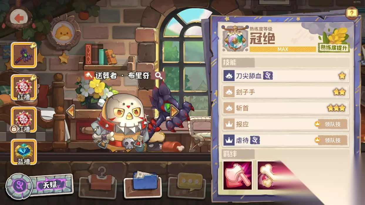 布里奇,选他主要原因是为了更好凑四斧的羁绊,顺便再补一手控制。 武器方面我选的是深渊,原因是福斯在多回合战斗中,会再次使用战术干杯,BOSS有可能在期间出手。而深渊提供的恐惧效果能有效控制BOSS,减少翻车的可能性。宝石方面选的是双流火+蓝色光环,蓝色光环主要是用来减触发率,让布里奇只普攻而用不了触发技。