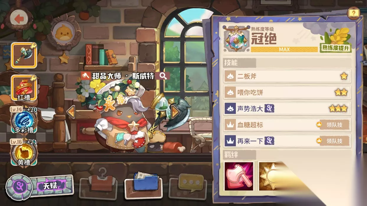 领队斯威特,一个没有感情的感电工具人,他特殊的领队二技(攻击次数向上取整)可以把队伍带到一个新高度。每当你的咔叽攻击速度>0,斯威特便会给你的咔叽额外增加一次攻击次数,相当于给每个咔叽配了上了圣物猫耳发夹。除了领队技外,斯威特的被动还能给近战组增加一次出手次数,也就是说近战组咔叽每次出手都会至少攻击3下,辅助能力MAX。 武器选择了时光斧头,宝石必带的是异常天象+金手指,最后的槽位可任意选择。斯威特的作用并不在输出,而是专注打感电效果,后期他的输出甚至位列倒数,所以大家不要过分期待他在输出上的表现也不必为他配最顶级的武器和宝石。 接下来,介绍的是其余的咔叽…