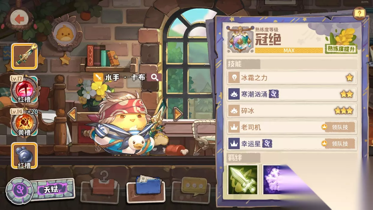 领队卡布,海洋四少中的二哥,可以说是直伤队里不可或缺的队长了!领队一技老司机让初始体力增加100,让爬高赢在了起跑线上。领队二技幸运星(无视任何削弱咔叽的厄运)更是神技,厄运一直或多或少地伤害着咔叽,有了它便可轻松告别厄运带来的烦恼。当然卡布的实力不局限在他的领队技,他的输出往往也在队伍的前列! 武器我选的是大天使剑,专注于伤害。宝石方面我选了克己+焦热诅咒,追求极致的伤害(最初我用的是克己+金手指,但配焦热诅咒的话最后一个槽位可以带黑生肖,所以我还是选了焦热)。这样的搭配可以让卡布轻松打出千万级输出,配合黑生肖有1/8概率打出近亿级的恐怖单体! ?在这我安利一下神石焦热诅咒,现在基本所有队都会打燃烧效果,所以佩戴焦热的咔叽天生便多了40%的增伤。其次是大部分队伍都能在输出出手前叠出20+的燃烧层数,这时焦热诅咒又可以为主动神石提供1000%+的伤害提高(焦热20级时每层燃烧+50%伤害),所以称它为最强增伤类辅助神石一点也不为过。