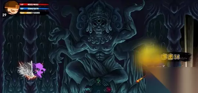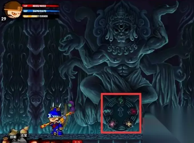 4、开启法宝,与“血海魔童”分别攻击两侧的柱子
