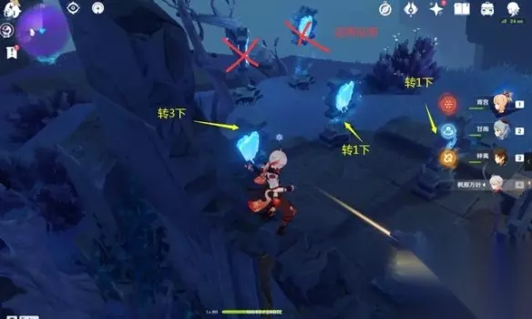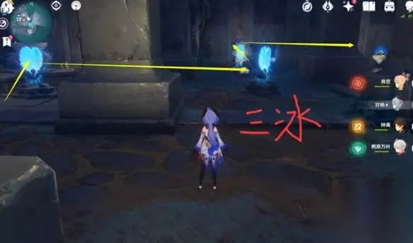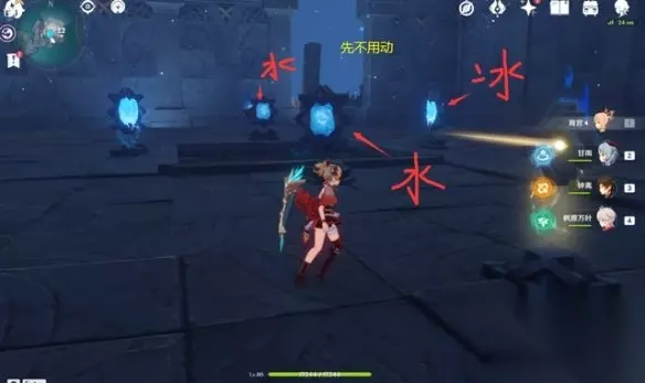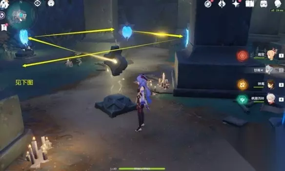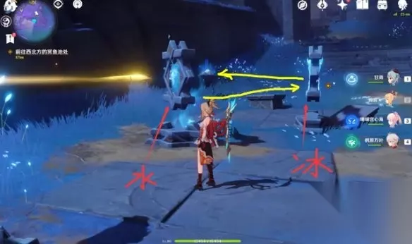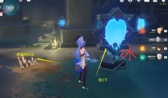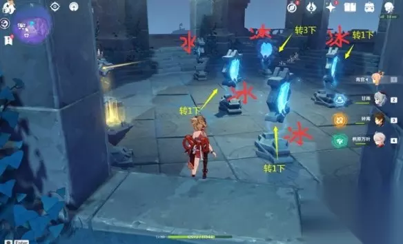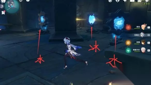 先看第六处这边会有两次解密,镜面先不要转动,按照图示把上下两个镜面变成水镜面,中间的是冰镜面,即可。
