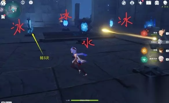 左边和中间的各转3下,并且都是冰。
