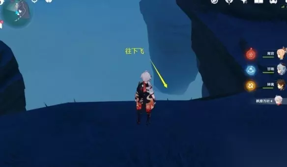 不过此处的解密地点在地下,先来到图中的位置,从悬崖向下飞。