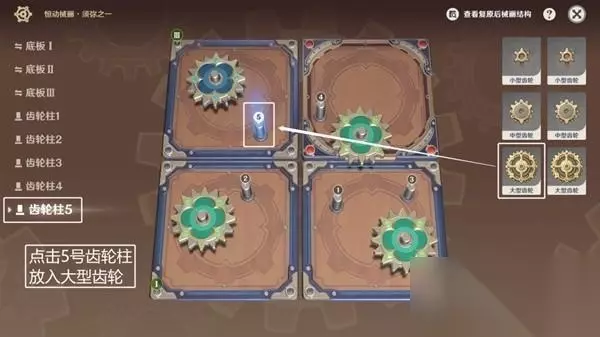 ◆ 第三步:点击5号齿轮柱,放进大中型齿轮。