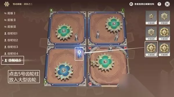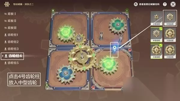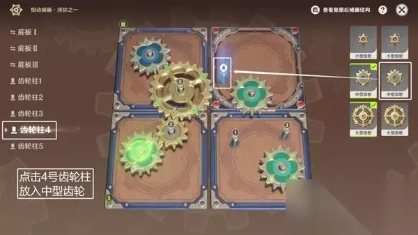 ◆ 第五步:点击4号齿轮柱,放进中小型齿轮。