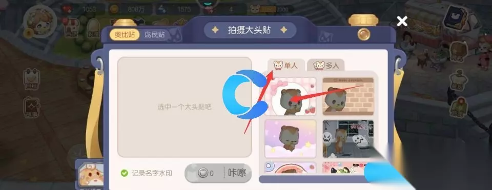 2、在拍照页面,点击右侧的单人按钮,在这里选择自己喜欢的款式。