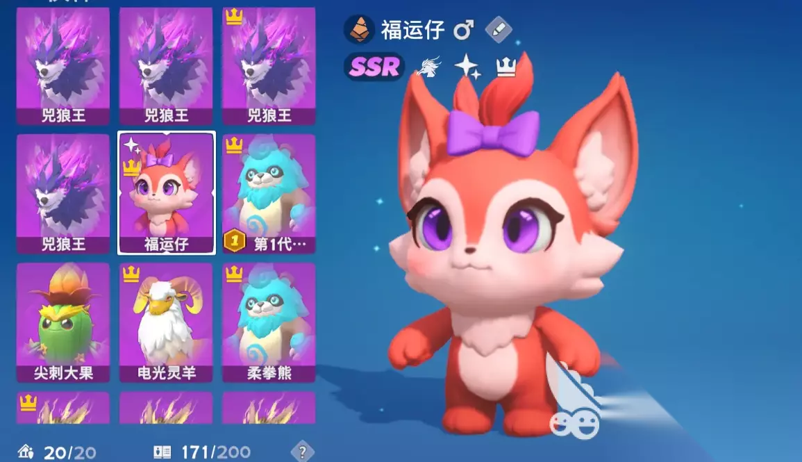 其实大家可以看到游戏放出的三个精灵都是60级,还有一些宝贝,都是可以通过自己的属性全部进行养成,增加自身数值的,在目前这些精灵的雷电属性上其实推荐的宠物也是很多的,当前看待他们的天赋为金色的,是目前预见的最高级别,而灰色级别天赋是最差的,绿色级别天赋比灰色级别天赋好一些,蓝色级别天赋比绿色级别天赋强点,紫色级别天赋比蓝色级别天赋强,这种技能的精灵可以被队伍中的其他精灵压制,如果是拿到了更多养成资源但是不想用的话,玩家自己可以售卖背包里现有的物品,左边的伙伴背包可以查看精灵的血量或者投喂食物。