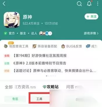 3、攻略站中分为两块选择工具那个版块。