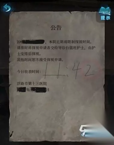 4、将【申请表】给薛护士,开启新的房间 5、在新房间内带有数字的密码柜中获得【吊扇】,密码柜的密码是各个数字病例对应的右下角图案 6、用【剪刀】剪走廊上木偶身上的线,获得道具【鱼线】;将【吊扇】、【鱼线】放置在患者物品放置处,触发剧情 7、房间内储物柜右边打开,获得【钥匙】,打开57号柜子,获得道具【照片】; 8、用【照片】开最后的门,出现解谜线索,根据线索摆放物品;打开房间,获得道具【蜡烛】;