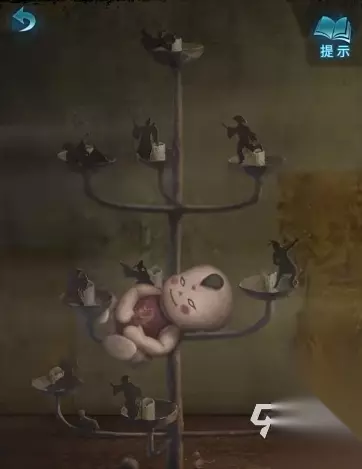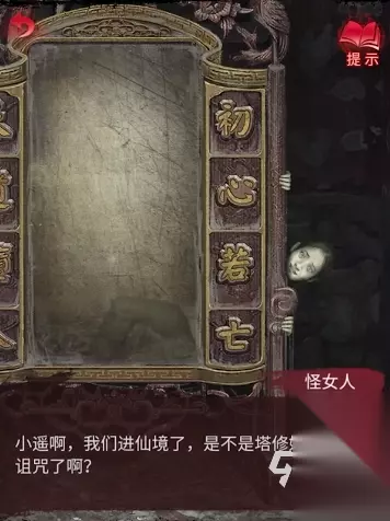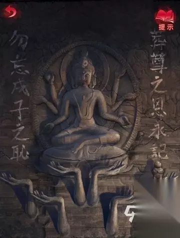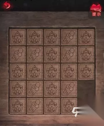 8、用【剪刀】剪碎布娃娃,获得【布娃娃头】,将【布娃娃头】放在前面的【刑德盘】上,触发剧情,获得【金泊】,将【金泊】画像放在供奉柜上,走剧情获得【布帛】。 9、回到奚家,在桌子上放置【布帛】,用【加热的熨斗】进行熨烫,获得【帛画】,将【帛画】放置子阿这个位置,获得一个灵塔机关,从下往下按,要将6个佛像全部按出来才能解谜成功。
