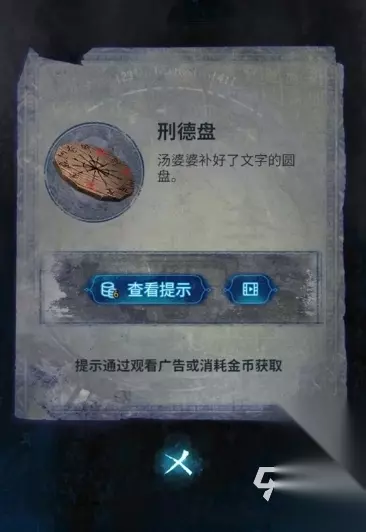 6、解谜后又是一段剧情,获得【熨斗】和文字信息,转动齿轮获得【强力胶】,根据剧情,获得道具【木材】,在奚家的灶台处点燃【木材】,加热【熨斗】后和【闹钟】一起放在桌子上,触发接下来的剧情,获得【刑德盘】 7、将【刑德盘】放置在如图位置,放上【蛋壳】,倒入【强力胶】、【砂石】,触发剧情