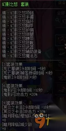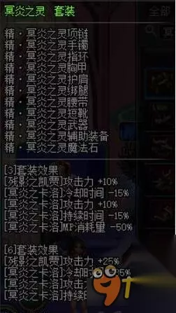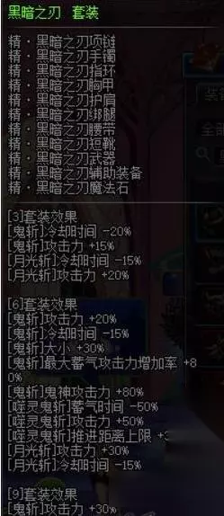 1、3件和6件都是强化鬼斩以及月光斩的效果,减少冷却以及增加攻击力,6件增加噬灵鬼斩的效果,9件强化鬼斩的攻击力还有大小。 2、9件套减少鬼影鞭的冷却时间,增加鬼影鞭的攻击力。增强卡洛解放三刀的时候50%的伤害,而卡洛基本上输出基本上是靠丢黑球的固定伤害,9件套的效果对冥炎卡洛的伤害没多大的提升。 3、鬼斩还有月光斩虽然最近几个版本一直在加强,可是个人还是不太推荐这两个技能做主力输出技能。而这套基本上都是强化鬼斩以及月光斩的攻击力,减冷却时间,导致这套不是主流的异界套。 4、如果平时收集起来,偶尔在搬砖的时候玩玩也是不错的选择......当然要打输出的时候不推荐这一套。 二、幻影之怒套