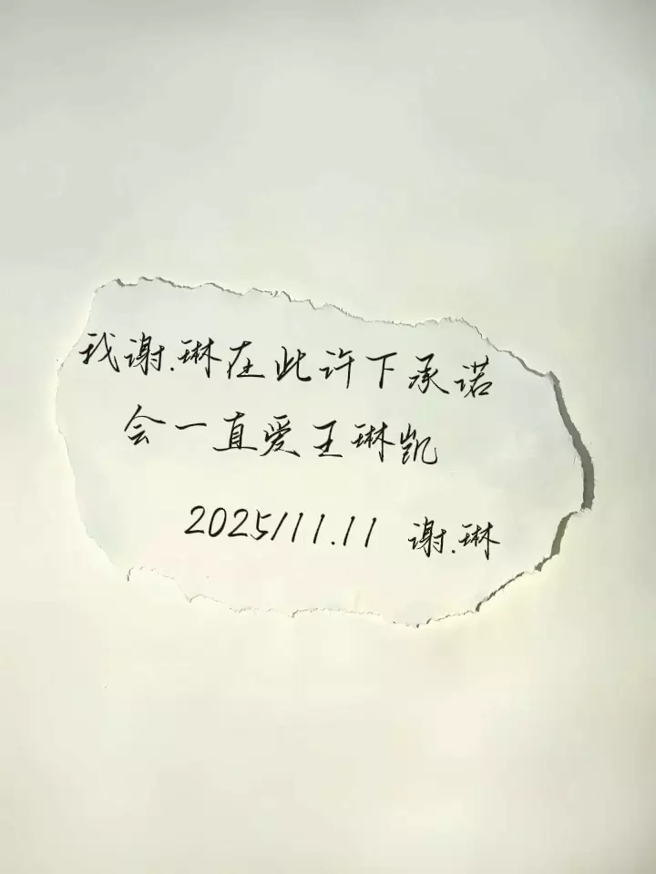 我谢.琳在此许下承诺,会一直爱王琳凯