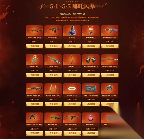 活动主要奖励有: 御・黑骑士-哪吒闹海(永久+永久资格) 命之镰+防化服+迷你生化手雷+生化弹匣(永久) 夺魂+机械手雷+迷你冰龙背包-尊贵黄金(永久) 网剧套装(永久) 王者之石*10+觉醒宝石*5+3000火线币 AK47-大帝林肯(永久)