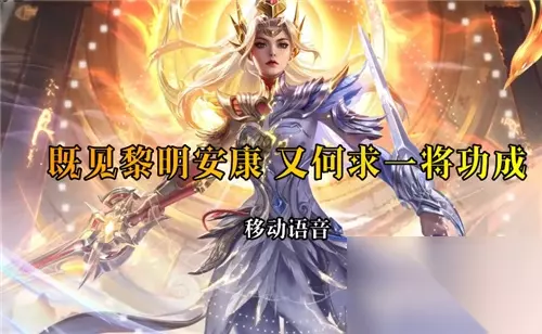 3、历数兵家胜负,不过逐水东流去。 4、人心和气,天地莫及。 5、愿舍此身,镇守万岁太平。 6、悬寂寂长夜之中,渡征人归途。 三、技能语音 1、一技能(轻剑):裂空。碧翎跃波。 (重剑):金羽,焚火。神辉,普照。 2、二技能(轻剑):玄鸟来吟,月落九幽 (重剑):剑指,所向无前。诛邪退避。 3、三技能(切换重剑):昭昭,若炽日之辉。掌苍冥。 (切换轻剑):皓皓,如朗月之华。执日月。 四、动作语音 1、个性动作(重剑):非不能战,实不应为。 个性动作(轻剑):犹记人间阵前舞 2、愤怒:神兵要诀,不可强求。 3、嘲讽:匹夫之勇。 4、拒绝:既有兵戈未止,当思虑不息。 5、悲伤:水深激激,薄苇冥冥。 6、恐怖:悠悠羌笛岂忍闻。 7、狂喜:休兵按甲,天地同愿。 8、个性:平衡之法,亦如日升月落。 9、抬手:人间百年,诸事皆安。 10、开心:百川归海,时和岁丰。 11、鼓掌:俯察休明之盛世 12、舞蹈:双剑凌云,重剑独绝。 五、其他语音 1、挑衅(重剑):何人,胆敢大动干戈。 挑衅(轻剑):尔等,当执玉帛再相见。 2、击杀(重剑):荡八方烽火。 击杀(轻剑):退四海狼烟。 3、击杀(五杀重剑):今日鸣金,再无战事。 击杀(五杀轻剑):此夜罢鼓,大可安眠。 4、死亡(重剑):天理有知。 死亡(轻剑):众生何辜。 5、关键伤害播报(重剑):晨昏轮转,焰光不减。 关键伤害播报(轻剑):一尺寒月碎铁衣。 6、关键群控播报(重剑):日光所急,皆尊我号令。 总而言之,花木兰荣耀典藏皮肤的台词多为四字成语,所以听起来是非常带感,有三国杀那味了。而且是双形态,每个形态都有一套独立的台词。 【小编推荐】专区入口 || 视频站入口 || 体验服申请入口 || 全民竞猜赢好礼 【新英雄爆料】| 司马懿 || 瑶 || 孙策 || 新英雄:囚徒/书圣/瞬 | 【新皮肤爆料】| 李白团战皮肤:敏锐之力new || 诸葛亮团战皮肤:掌控 || 典韦穷奇皮肤 Hot!! | 王者荣耀最新攻略 赛季段位继承表 每日一题 边境突围玩法攻略 体验服爆料