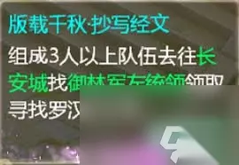版载千秋活动每年举办一次,以印刷术为主题,玩家需要完成一系列任务,收集经文、制版、印刷,最终开启隐藏任务。活动通常分为组队任务和单人任务两部分。 - 组队任务:玩家需组队前往长安御林军左统领处领取任务,击败15位罗汉,每场战斗随机掉落两本经文。重复的经文可以选择使用,获取额外的经验或效果;如果没有重复的,则保留用于制版。 - 单人任务:完成抄写经文任务后,玩家需单人找到袁天罡,领取法会因由经文。使用法会因由经文,完成猜字游戏,成功后将获得法身非相道具。 二、收集经文与制版印刷 - 迎接使者:使用法身非相道具,单人点击任务栏寻找各路使者,通过战斗获得未拥有的经文。每个使者随机给两张经文加上法身非相的效果(额外获得一张未有的经文)。 - 雕版传播:玩家需要使用法身非相继续探访闲人,收集完所有经文后开始制版印刷。制版过程中,玩家需要优先选择墨点少的经文进行上墨,以节省资源。有四个隐藏字需要先制版妙行无往,印刷四本,上墨印制8本、16本、24本时会有额外奖励。 三、开启隐藏任务 当所有31本经文制版结束后,玩家可以使用法会因由经文开启隐藏任务。隐藏任务包括挂机任务、挑战毕升数字怪和连续答对猜字游戏。 - 第一个隐藏任务:击杀即可过关,对于新区玩家来说可能较难,建议根据自身实力选择是否挑战。