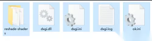 就是这五个文件,dxgi.dll是核心文件,dxgi.ini是配置文件,dxgi.log是报告文件(不用管,你用了就会自动生成) ok.ini是我的预设文件。前面的文件夹reshade-shaders是reshade各种fx设置文件。如果你不想用了,把他们五个删了就成。