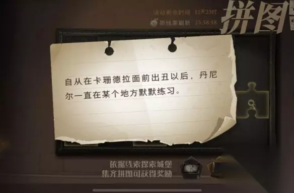自从在卡珊德拉面前出丑以后,丹尼尔一直在某个地方默默练习是今天的1线索之一,根据线索大家知道需要练习,然后主角是丹尼尔,相信大家都猜到是哪里了吧,还不知道的玩家…