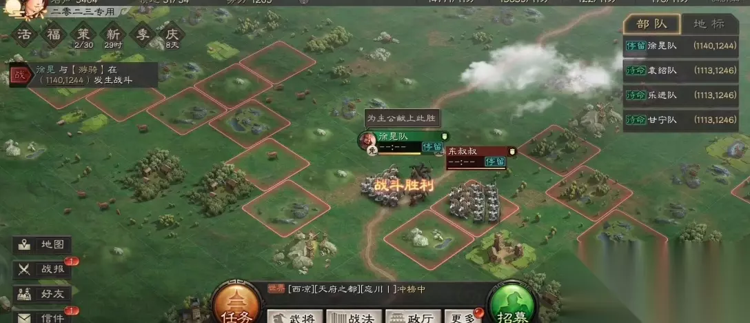 打倭寇不仅能拿资源,还能积累实战经验,对熟悉游戏战斗机制很有帮助。尤其是高等级倭寇,挑战成功后会有成就感,同时也能为后续的攻城战和PVP做准备。倭寇不会恢复兵力,打掉就没了,所以看到高级倭寇千万别错过,如果时间有限,可以优先打高级倭寇,收益更高。