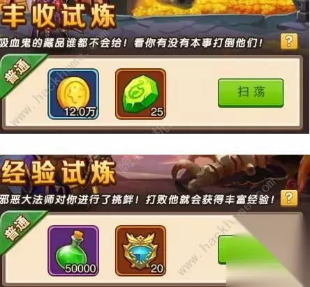 点击获取即可获得金币以及英雄经验,有免费获取次数,不过每天有限制次数哦 三、每日试炼 推荐星级:★★★★★ 可获数量:大量 每天有2次免费挑战次数,挑战即可获得大量金币和英雄经验,难度越高,奖励越多